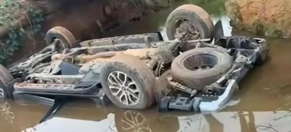 Na noite do último sábado (20), um veículo ocupado por três pessoas despencou de uma ponte na estrada que conecta a Vila Bandinha à Vila São Raimundo, nas proximidades da Vila Santa Fé.